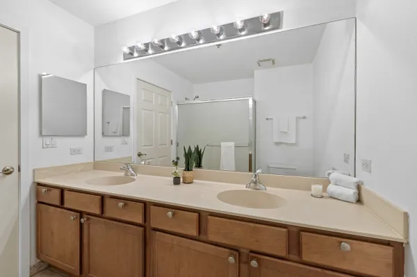 Amazing light-filled 2BR/2BA condo in the highly sought-after Sauganash Whole Foods building. This spacious west-facing unit features a desirable split floor plan design in a well-maintained elevator building. Enjoy newer Luxury Vinyl Wood flooring (2023) in the living, dining, and kitchen areas, with fresh carpet (2023) in both bedrooms. The open-concept living and dining space flows seamlessly to a generous balcony-perfect for entertaining or relaxing while taking in stunning sunset views. The well-appointed kitchen offers granite countertops, custom tile backsplash, undermount sink, and eat-in island, along with a refrigerator, microwave, stainless steel oven/range and stainless steel dishwasher. The expansive primary suite includes a large walk-in closet plus two additional storage closets, and a private ensuite bathroom with a double vanity and walk-in shower. The second bedroom is also generously sized and features double closets. The second full bathroom includes a bathtub and shower combo. Additional highlights include in-unit laundry, one garage parking space, and additional storage conveniently located on the same floor as the unit. Enjoy the unbeatable convenience of Whole Foods on the ground level and easy access to I-94, CTA, parks, shopping, dining, and more. Move in just in time to enjoy summer in your new home!