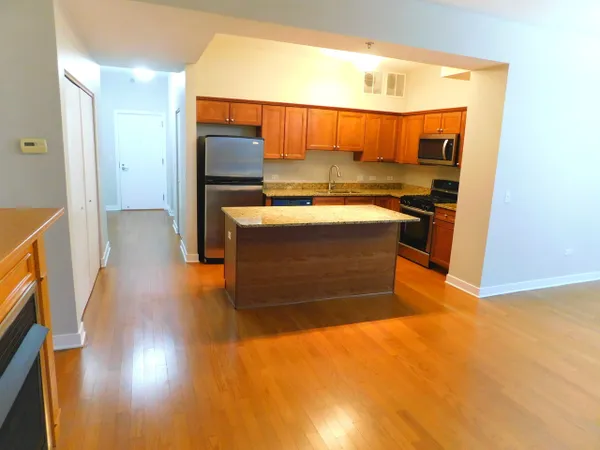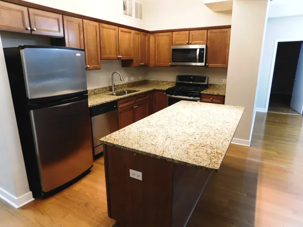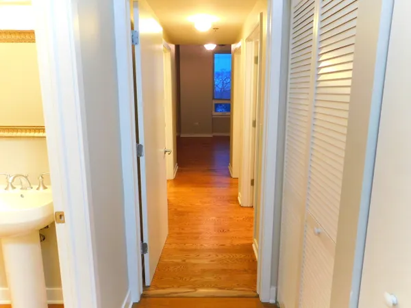 Gorgeous & rarely available 2.1 bath corner unit! PRICED TO SELL! This luxurious condo features breathtaking views, private corner balcony, custom cabinetry. Beautiful Hardwood floors throughout. Bedrooms recently updated with new hardwood floors. Kitchen with stainless steel appliances and granite counters. Island opens to living and dining room for a modern floorplan. Large Master suite has 2 walk-in closets, spacious bath with separate shower and 2 basins. Second bedroom has 2 closets and full private bath with jacuzzi tub. Another half bath in hallway for your guests as well as in unit laundry. 10 ft+ ceilings. 2 parking spaces available in heated garage for additional $10,000 each. Quiet and very clean! Move in ready. Features direct access into Whole Foods Market on 1st floor from the elevator, no need to go outside! Highly desired Sauganash location near bike & walking trails, parks, forest preserves, shopping, restaurants, 90/94 and schools nearby. 2 blocks from the golf course. Don't miss this rare opportunity! Close and move right in.