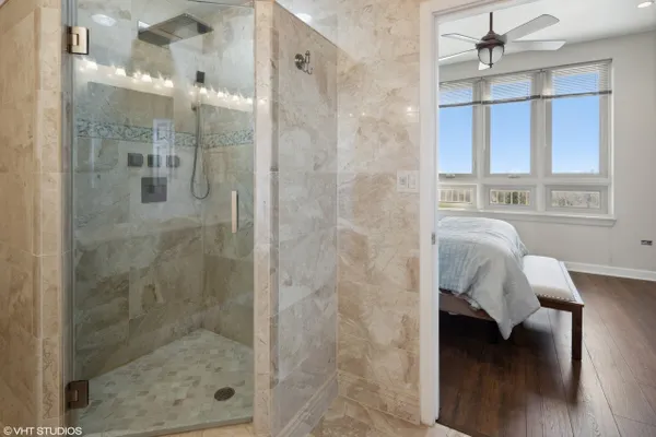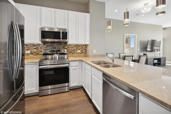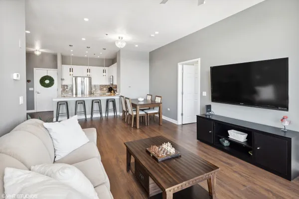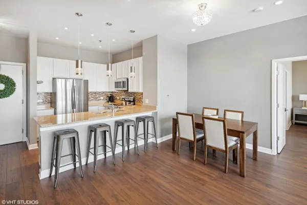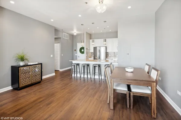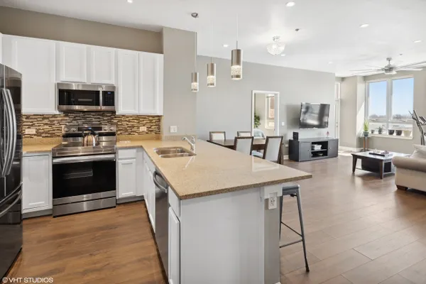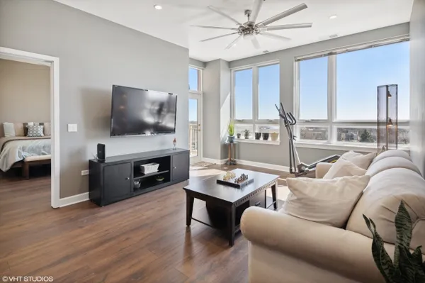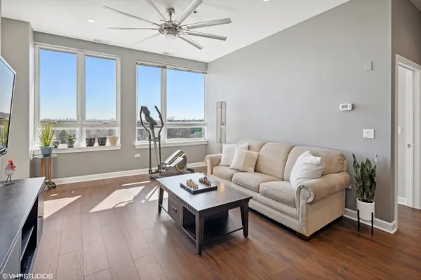 Welcome home to 6000 N Cicero #503, located in the highly sought out South Sauganash Place. As you step into this sunny open-concept 2 bedroom, 2 bathroom top floor condo, you're greeted by a white updated eat-in kitchen with new stainless steel appliances. Flowing seamlessly into the living/dining room, the space is perfect for entertaining guests. Enjoy a morning cup of coffee on your private balcony and watch the sun rise over Chicago with unobstructed views of the entire city skyline. The spacious primary suite offers a walk-in closet & an oversized bathroom with dual vanity sinks. The second bedroom is situated on the other side of the condo leaving enough separation from your guests, work from home office, or your next workout room! As for the location, it's unbeatable! With Whole Foods downstairs (accessible through the building!) and neighborhood favorites like Alarmist Brewing & Taproom, Joong Boo Market, Sauganash Park & LaBagh Woods, you have city living & tons of green space all just around the corner.